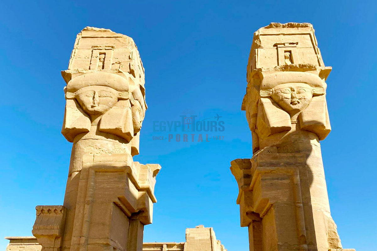The impressive Kalabsha temple is a wonderful site that is located within the view of the Aswan High Dam in Aswan and it is the first stop for any Nile River Cruise on Nasser Lake. Once you arrive there, you will walk along its bewitching stone causeway that leads to the temple’s first pylon. Then, you will pass a colonnaded court where there are 8 columned hypostyle halls. The amazing hieroglyphs & reliefs on its walls tell us a lot about the Greek Pharaohs and the ancient Egyptian gods & goddesses.