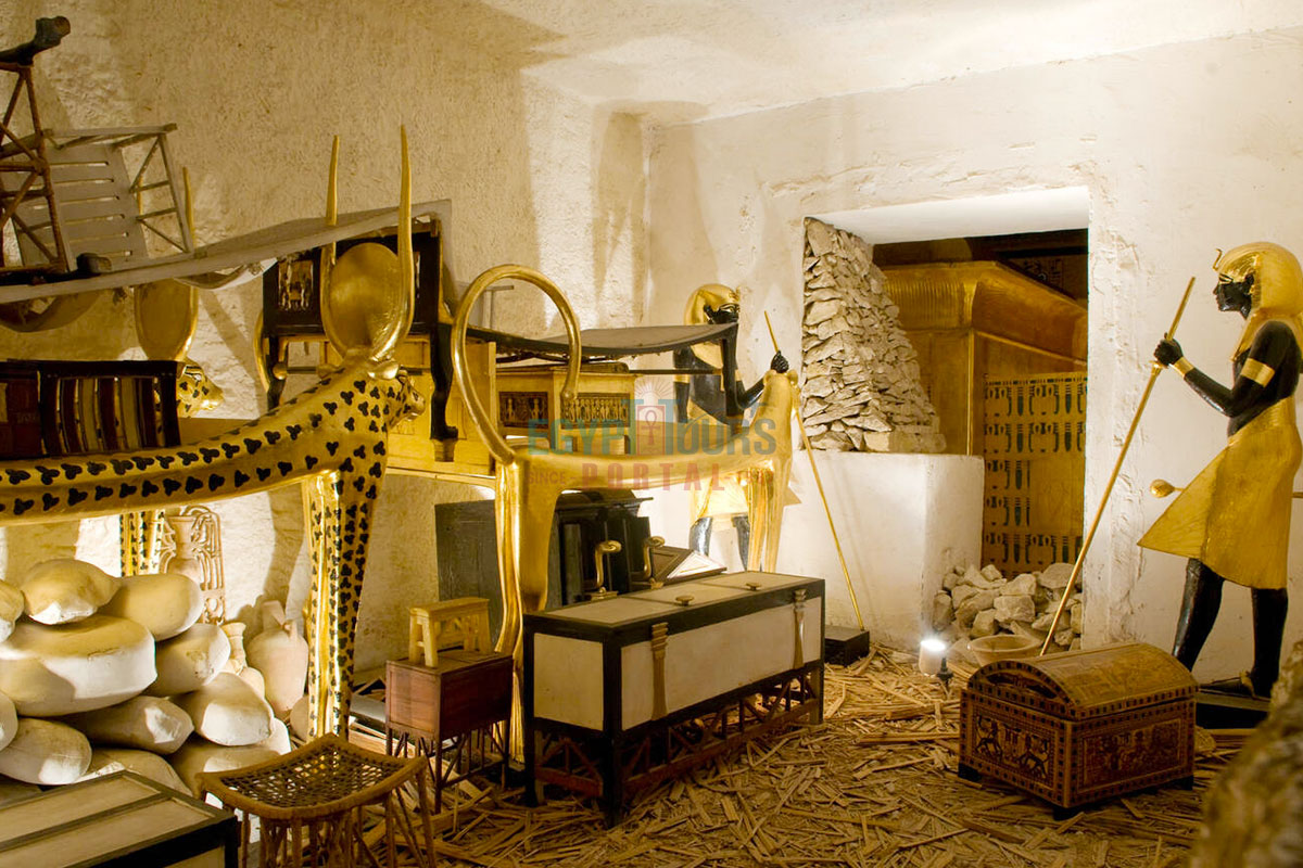 It holds an uncanny resemblance to the authentic pieces that took years and substantial investment. Every treasure in the exhibit, from golden jewelry to the majestic throne and alabaster canopic jars, is faithfully represented. This recreated tomb comprises various chambers which are the Entrance Passage, Antechamber, Annexe, Burial Chamber, scenes adorning the walls, Tutankhamun's mummy, Shrines, and Treasury. This exhibition surpasses the typical museum experience, thus offering a near-identical presentation of the original discovery, ensuring visitors witness history in stunning detail.