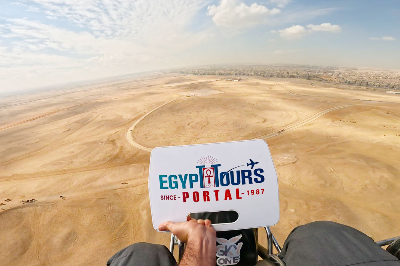Paragliding over the Giza Complex will be like hovering over some of the biggest and tallest wonders on the face of the earth. All our adventure seekers will get to soar the skies of Giza and feel the heavenly winds of the clouds & the ethereal sun rays of Egypt while taking in the breathtaking view of the iconic pyramids and the Sphinx with all their might, beauty and glory from above. Our British clients will be rewarded with a deep understanding and appreciation for the rich historical significance and majestic structures of the Giza complex during this one-of-a-kind, unforgettable adventure. Paragliding in Cairo near the Pyramids stands out as a secure adventure, upholding top safety standards for British travelers considering a Pyramids day tour. Every aspect of this awesome activity will be calculated for and prepared by a team of seasoned experts of a professional pilot and technicians who utilize the safest and most state-of-the-art paramotor equipment. Book this thrilling activity across the skies of Giza to create the memories of a lifetime in the midair of the Giza complex.