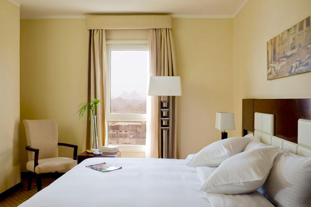 The Barceló Cairo Pyramids is a refined 4-star hotel conveniently located in Giza, near the iconic Pyramids and the Great Sphinx. This hotel offers a modern escape with 236 elegantly furnished rooms, featuring contemporary amenities and stunning views of the pyramids. Guests can enjoy a variety of dining options, including an exquisite international buffet at Horus Restaurant and authentic Italian cuisine at Nefertari Restaurant. The hotel's standout feature is its rooftop terrace and pool, where visitors can relax while taking in panoramic views of the ancient wonders. Additionally, the hotel provides amenities such as a well-equipped fitness center, a soothing spa, and versatile meeting spaces for business travelers. With its blend of comfort, luxury, and prime location, Barceló Cairo Pyramids serves as an ideal base for tourists seeking to explore Egypt's rich history and culture.