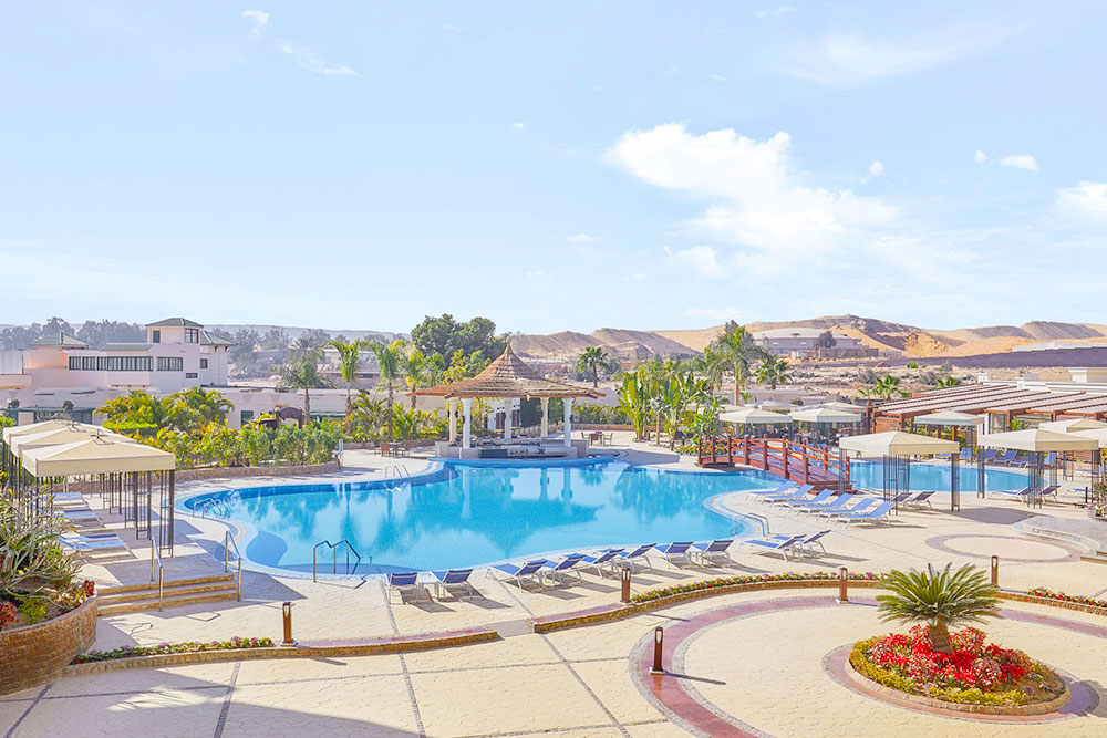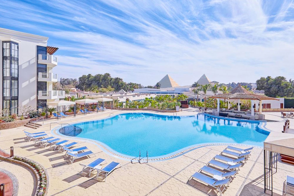 The Steigenberger Pyramids Cairo 5* hotel is a luxurious retreat located in the shadows of the Great Pyramids of Giza, offering guests an unforgettable view of these ancient wonders. Modern in design and rich in amenities, the hotel features elegantly appointed rooms, a sparkling outdoor pool, and a variety of dining options that cater to all tastes. Its strategic location provides easy access to the historic sites and places guests within reach of Cairo’s vibrant city center. Ideal for both leisure and business travelers, the hotel ensures a comfortable stay with state-of-the-art facilities and impeccable service.